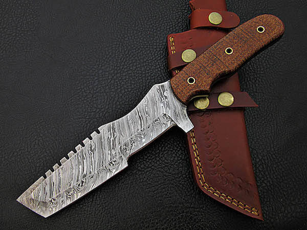 Couteau de suivi en acier damas personnalisable fabriqué à la main OEM manche en micarta de meilleure qualité pour usage industriel et chasse de qualité bricolage