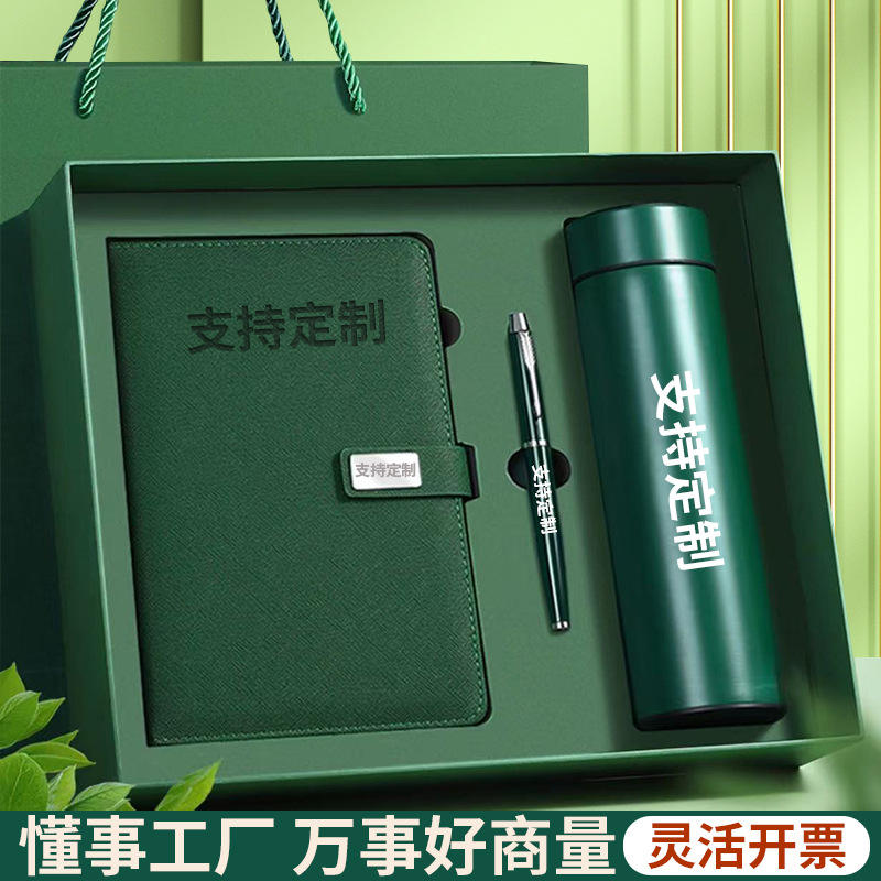 Customizable Office Corporate A5 Notebook Gift Set Imitation Leather Thick Notebook Logo Printing Business-Themed Thermos