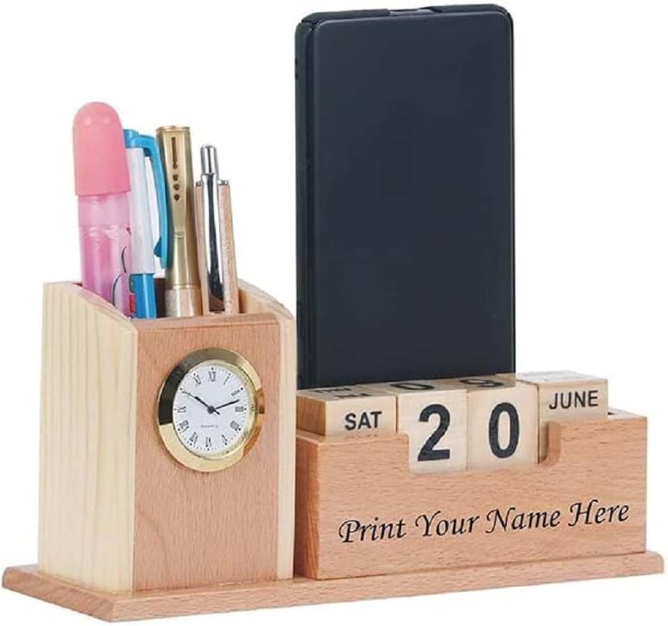 Organisateur de bureau personnalisable avec plaque signalétique en bois personnalisée et aimant de réfrigérateur caractéristique produit promotionnel innovant