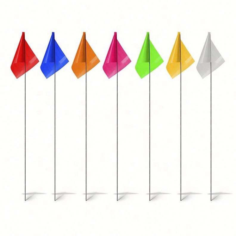 Drapeau de signalisation extérieur personnalisable en PVC avec mât, taille 3x5 pieds, en fibre de verre, prix abordable pour des campagnes publicitaires colorées avec logo.