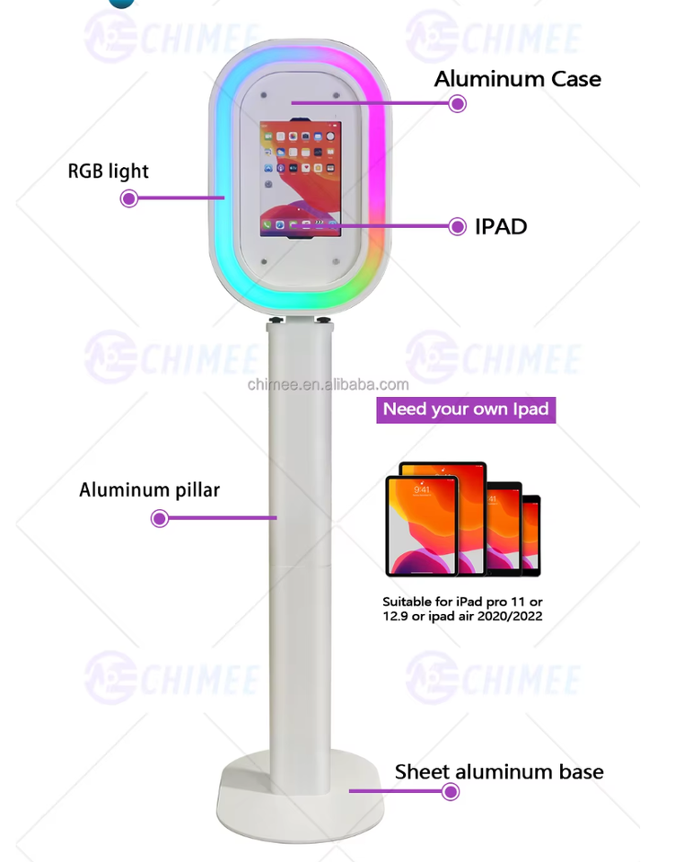 Coque de Photobooth Selfie Ovale Personnalisable pour iPad, Machine Professionnelle Légère pour Location d'Événements et de Mariages