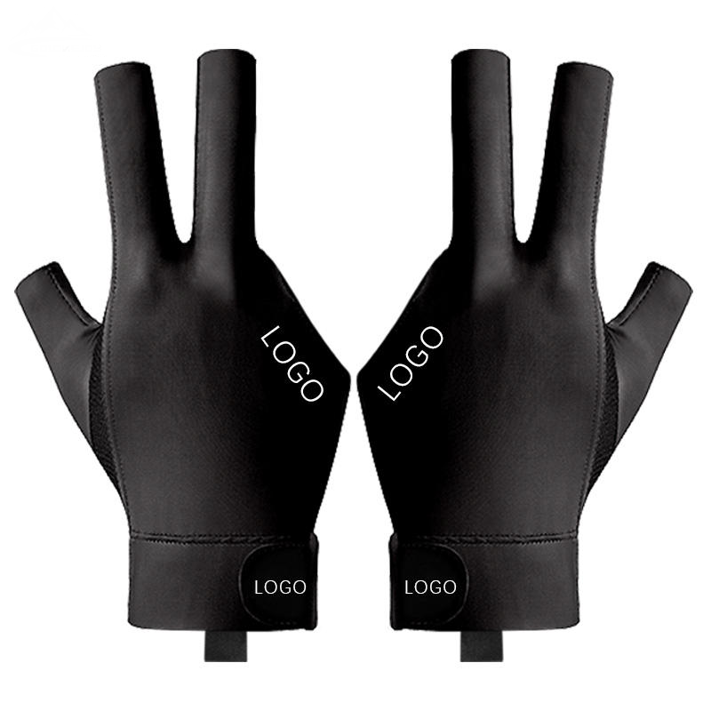 Gants de snooker personnalisables en polyester à 3 doigts, séchage rapide, fermeture à enfiler, durables, antidérapants et respirants pour billard unisexe