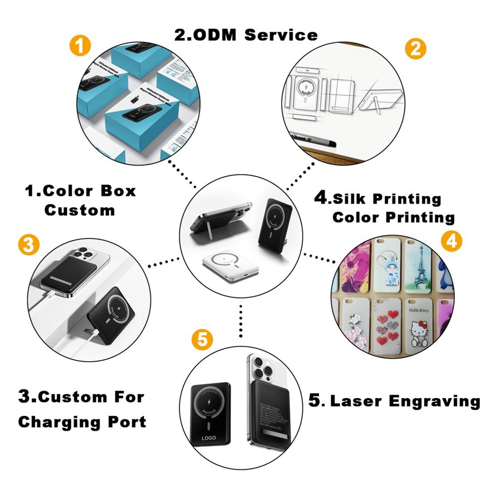 Batterie externe magnétique sans fil portable personnalisable 5000mAh/10000mAh, chargeur mobile OEM en aluminium, idéal pour les voyages