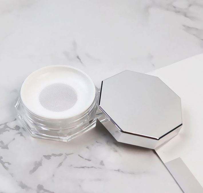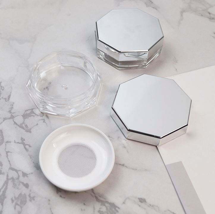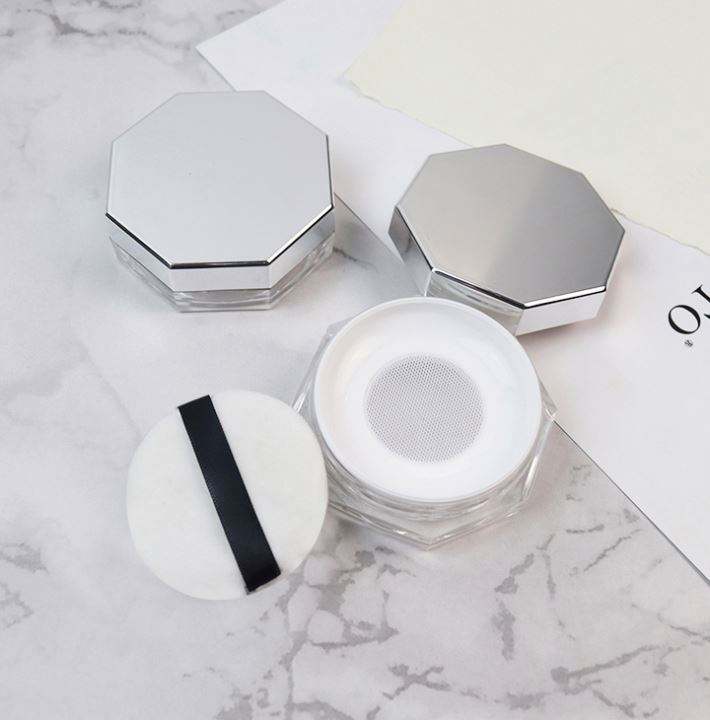 Ensemble de boîtes à poudre en maille élastique portables et personnalisables, avec miroir octogonal argenté, sous-emballage pour maquillage et poudre corporelle en plastique