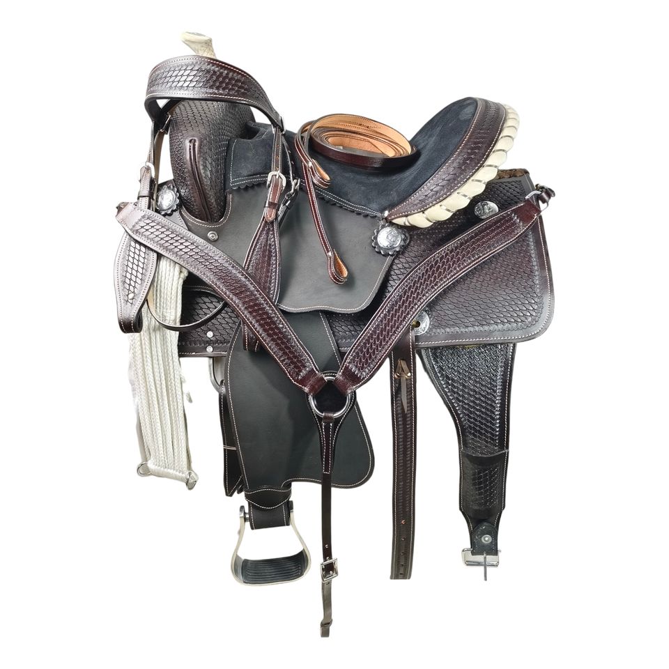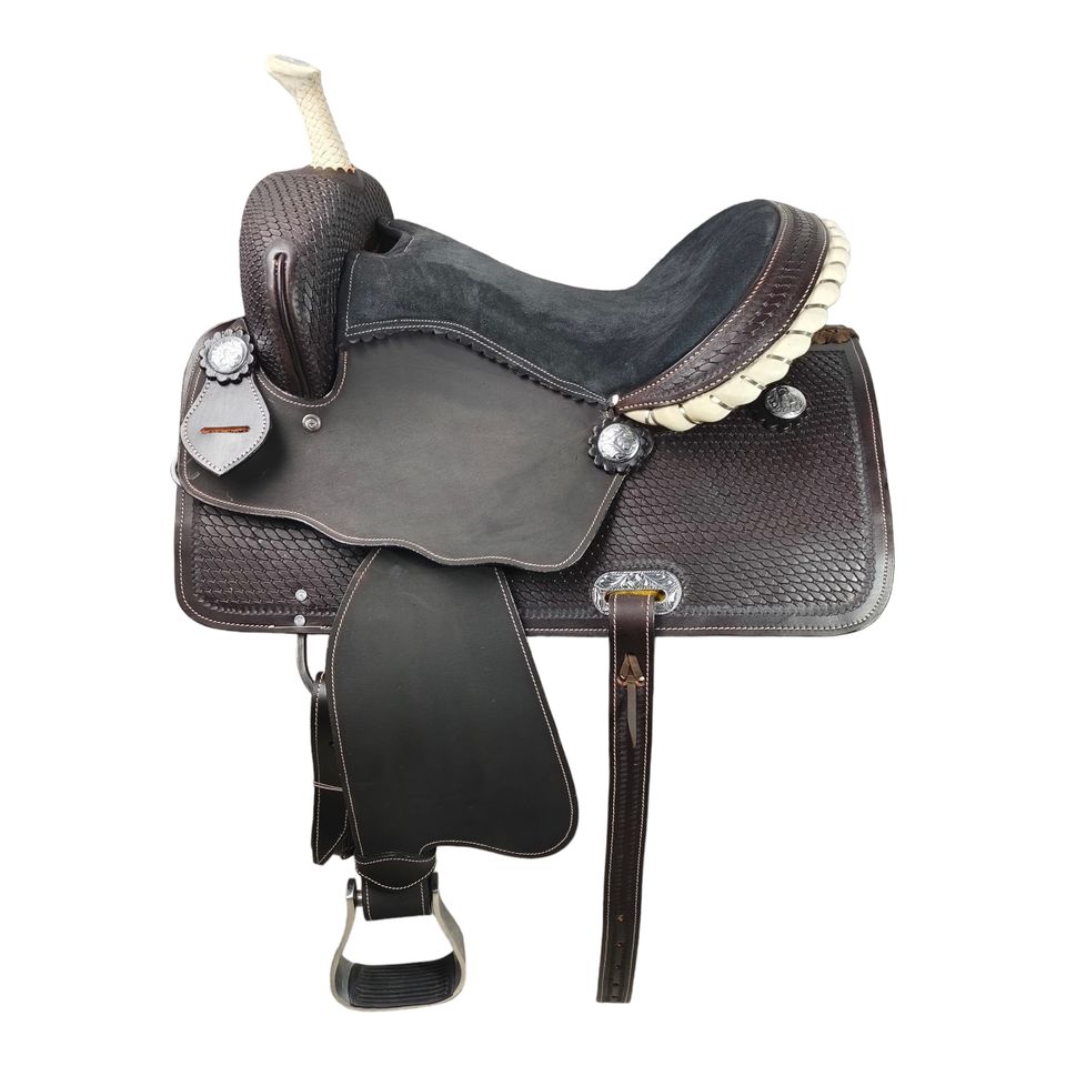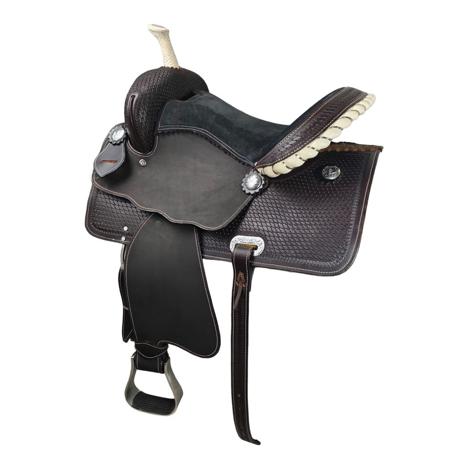 Selle d'équitation Western en cuir synthétique de qualité supérieure personnalisable (taille du siège 14-18 ")