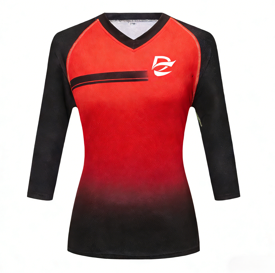 Maillot de VTT professionnel trois quarts pour femme avec logo personnalisé, séchage rapide, évacuation de l'humidité, aérodynamique, pour les événements de club et les courses