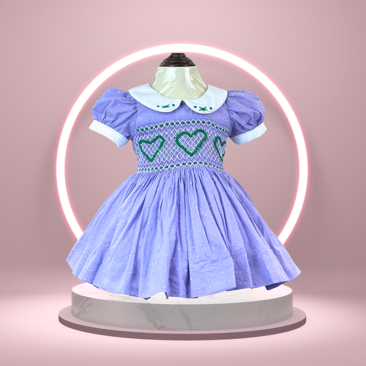 Customizable Purple Heart Smocked Dresses 100% Cotton Toddler Sizes 2M to 12Y Low MOQ Custom Logo for Children's Parties