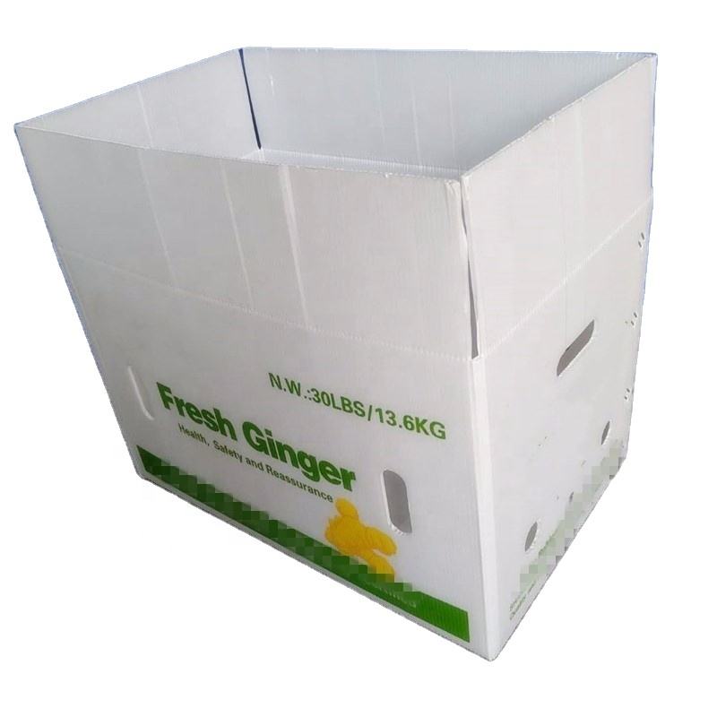 Boîte de gingembre pliable recyclable personnalisable PP ondulé étanche pour usage agricole