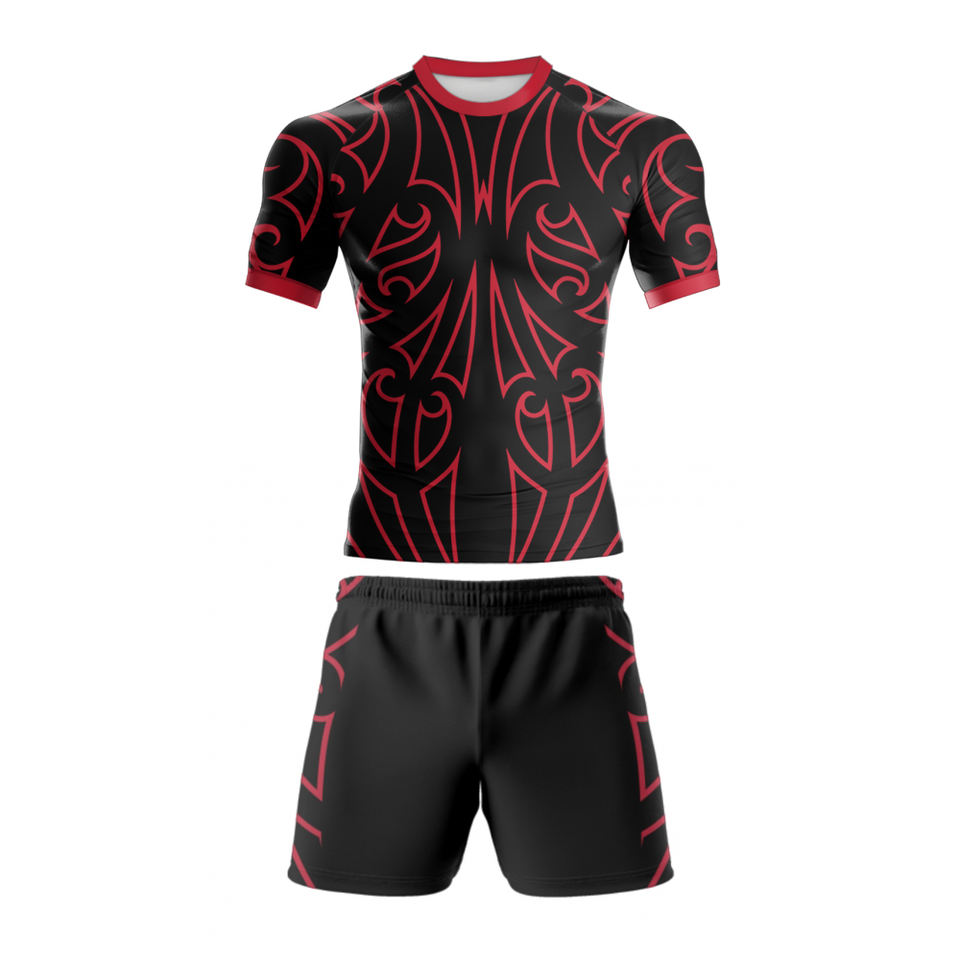 Ensemble de vêtements d'équipe de rugby sublimés rouges personnalisables Maillot respirant et confortable avec short Logo et taille personnalisés