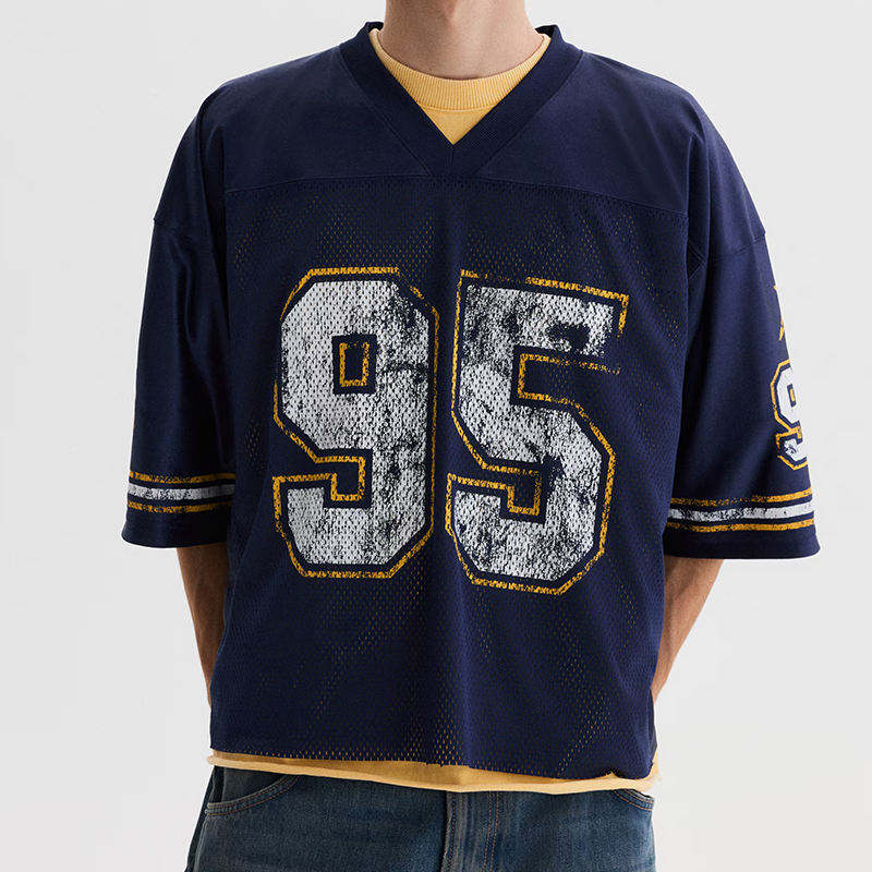 Maillot Rétro Personnalisable Séchage Rapide Surdimensionné en Mesh pour Football et Basketball – Tenue Décontractée pour Fans de Sport – T-Shirt Long Imprimé