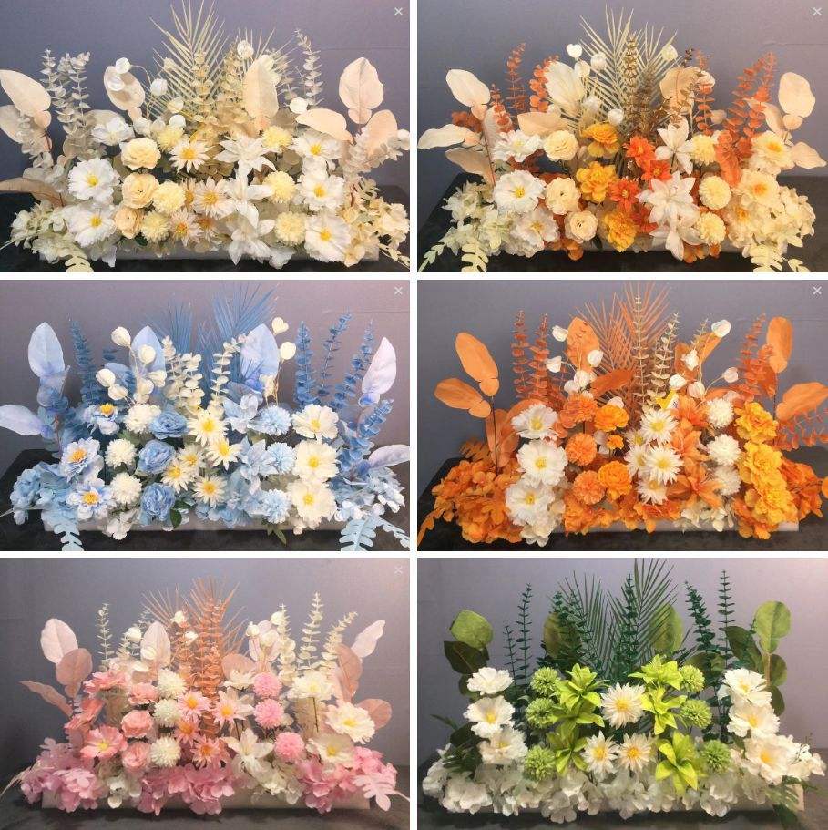 Décor personnalisable de roses, lys et tournesols pour les arrangements floraux au sol et les compositions florales artificielles de mariage