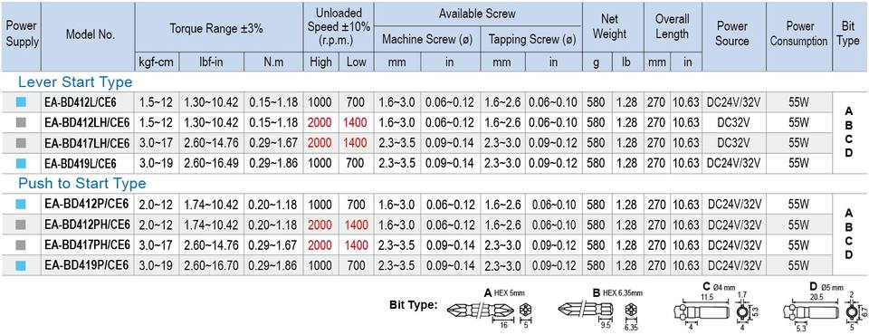 Numéro de Type:EA-BD412L/CE6 ~ EA-BD419P/CE6