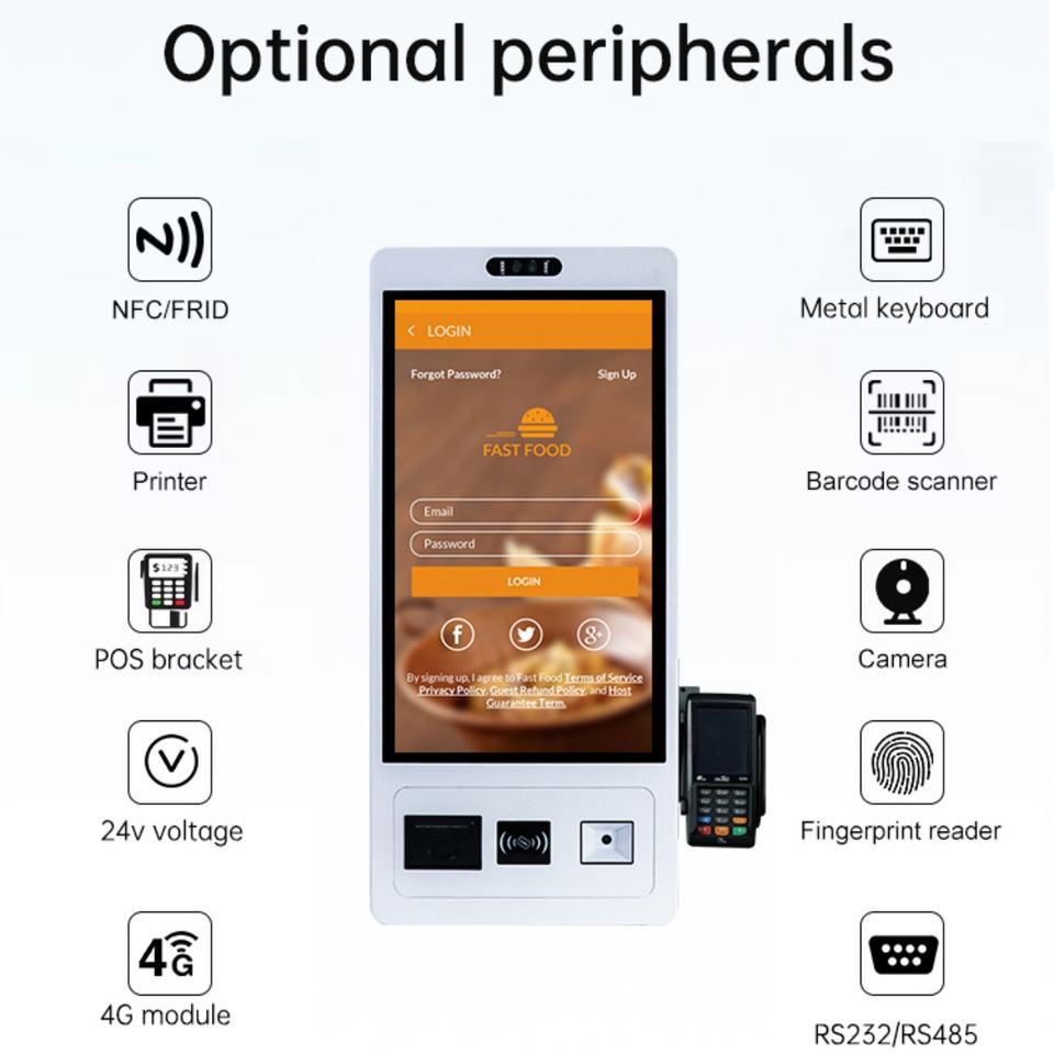 Kiosque de commande tactile en libre-service personnalisable avec système de paiement intégré, solutions de menu numérique pour la restauration rapide et le commerce de détail, SDK