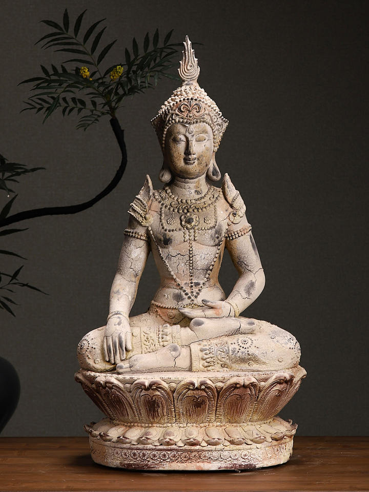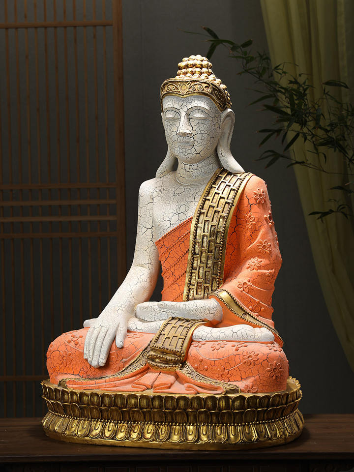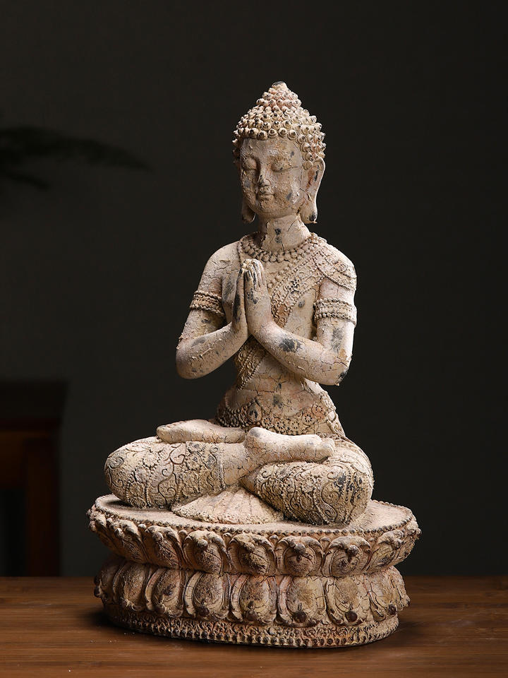 Statue de Bouddha Lotus Sereine Personnalisable, Figurine en Résine Finition Or pour Fontaine d'Intérieur, Bureau, Cadeau Paisible