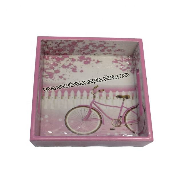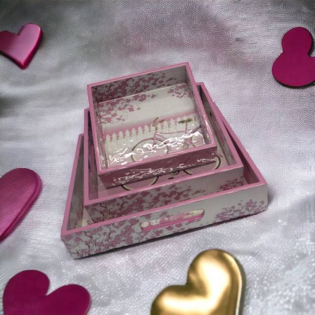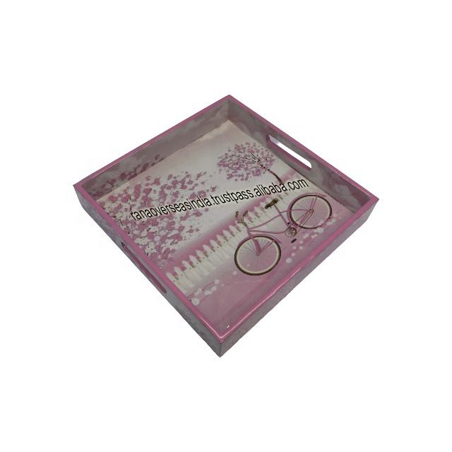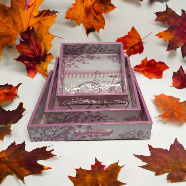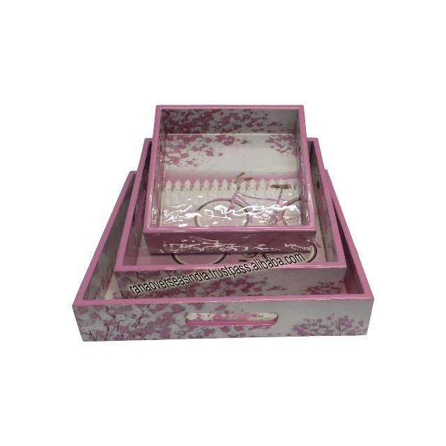 Customizable Set Of 3 Square Colorful Wooden TrayProduct Name