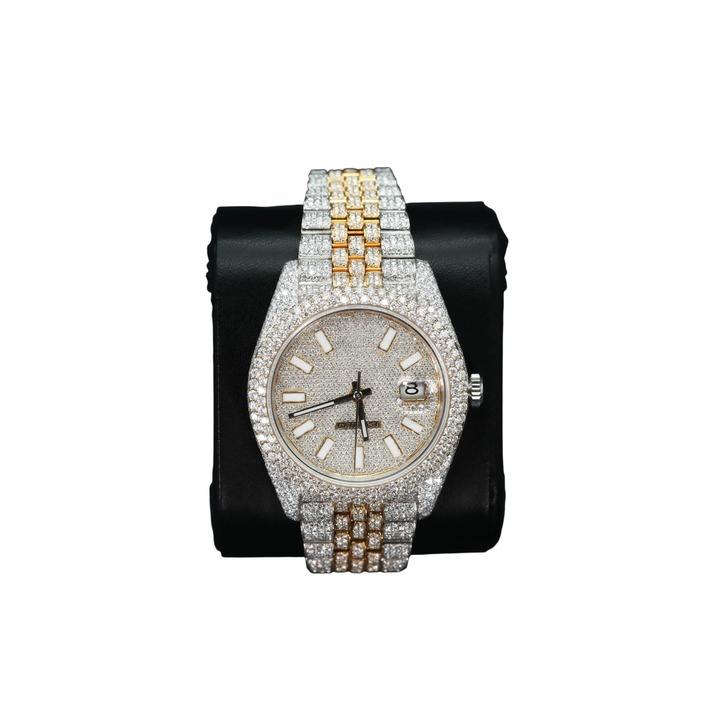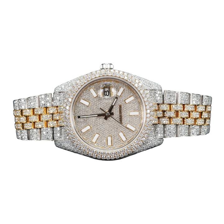 Montre personnalisable Sier White Tone Rod Fly Iced Out Moissanite Diamond, mouvement automatique, bracelet en silicone, style Hip Hop, mouvement à quartz