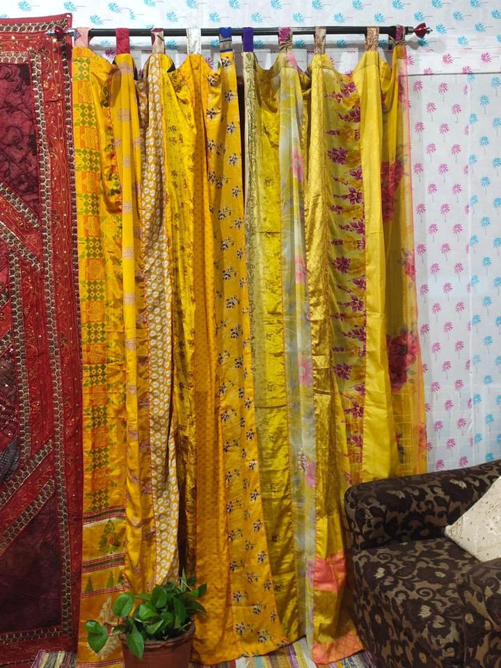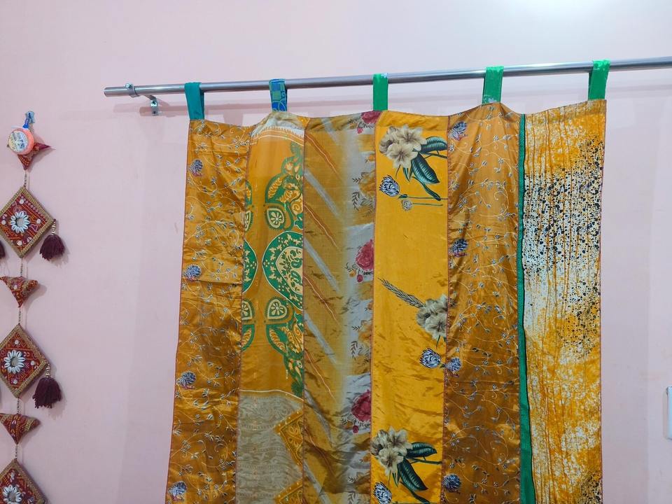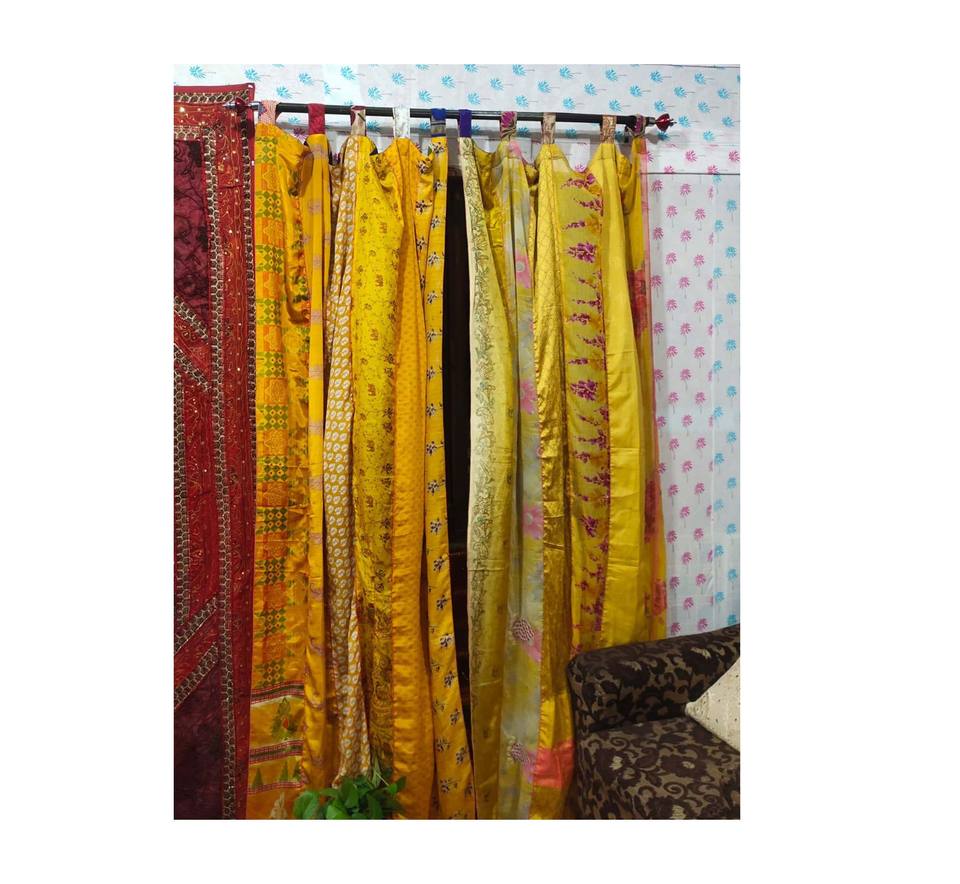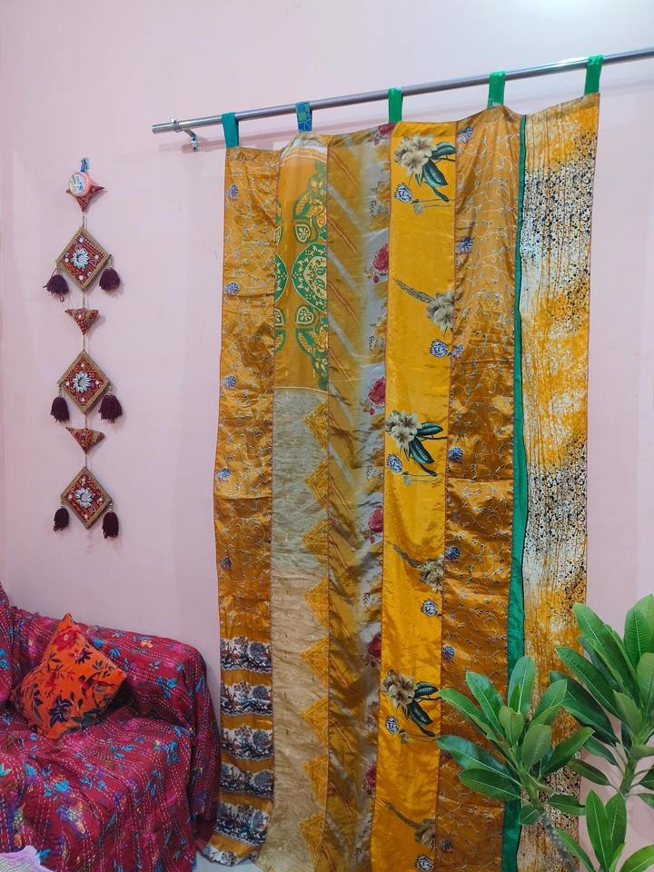 Rideau/Drapé en Patchwork de Sari de Soie Vintage, Couleur OrangeNom des produits