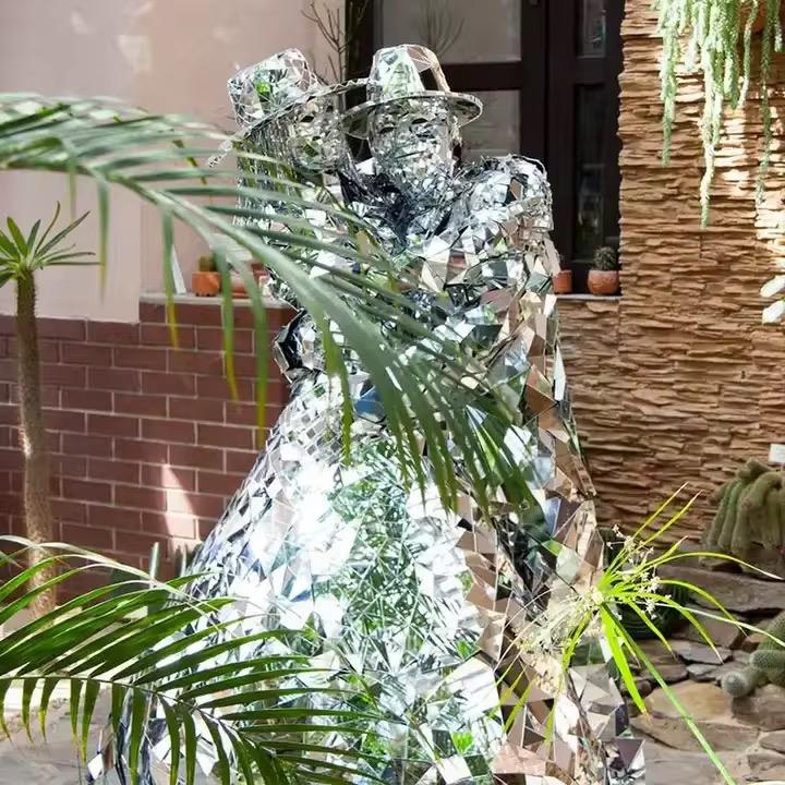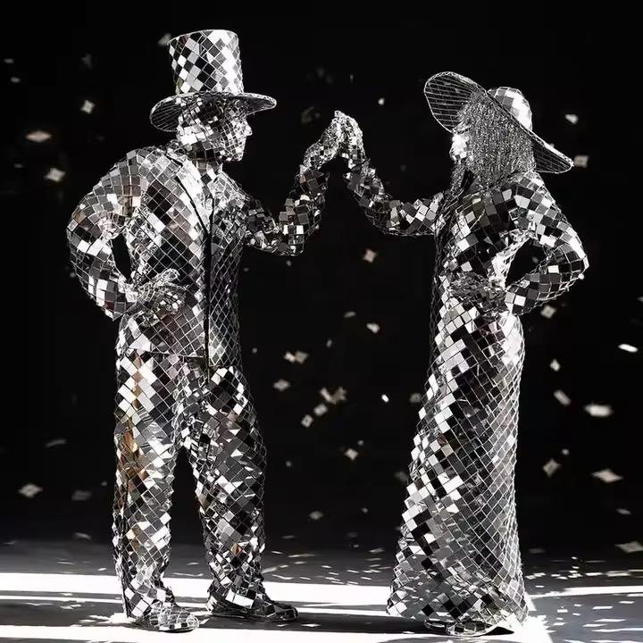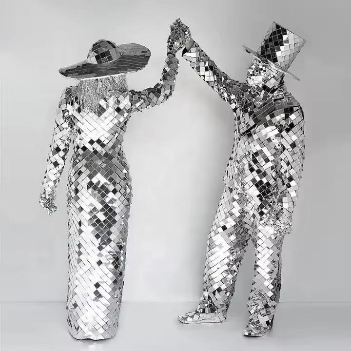 Costume de danse pour homme et femme avec miroir argenté personnalisable pour scène de club et ballet inspiré du costume de robot en verre pour chanteur de fête de bar