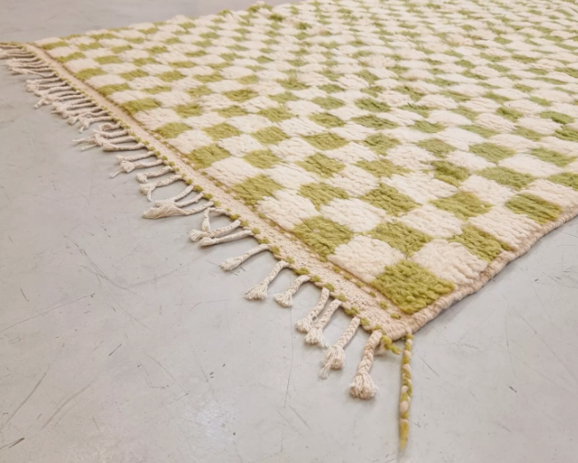 Tapis marocain moderne fait main à poils longs, personnalisable en taille, vert et blanc, rembourré, pour salon, chambre d'enfant, bureau, prière