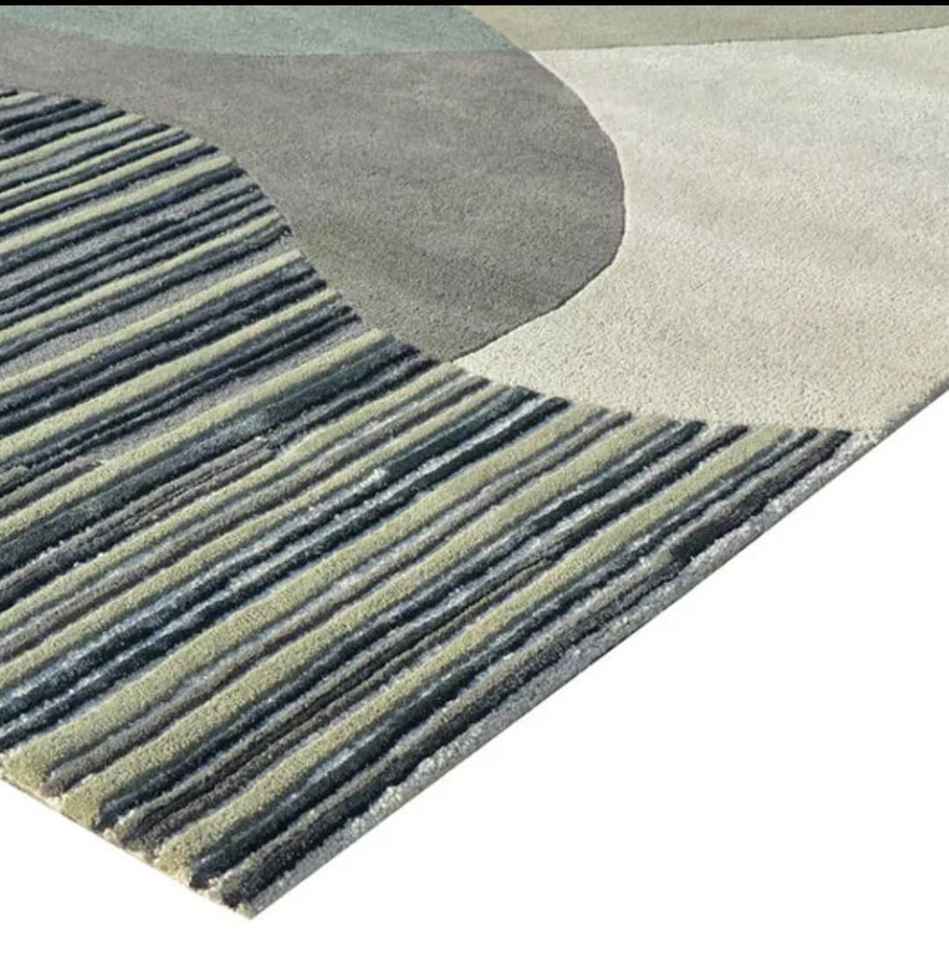 Customizable Size Multi-Color Hand Tufted Wool/Silk Flat Pile Pet Friendly Area Rug Abstract Pattern Living Room