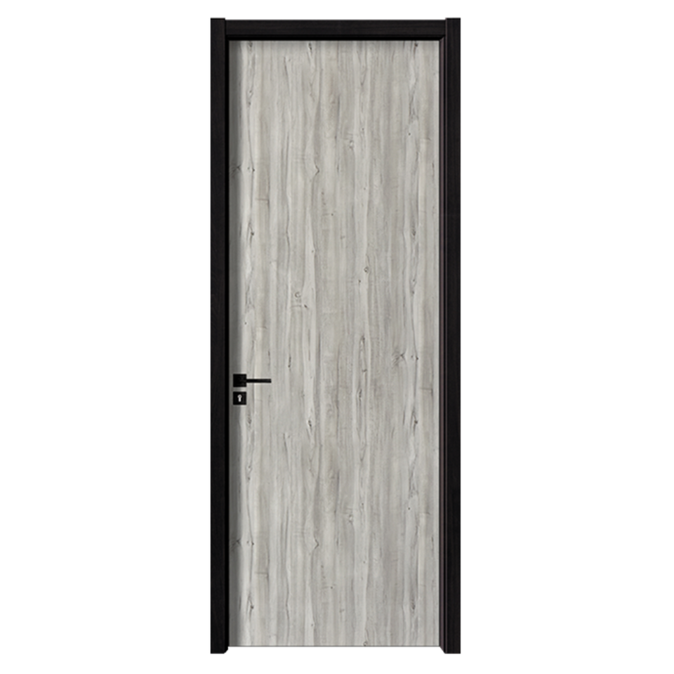 Porte en bois massif résidentielle pour chambre à coucher, finition de surface résistante à l'eau, placage PVC, taille personnalisable, intérieur résistant à l'humidité