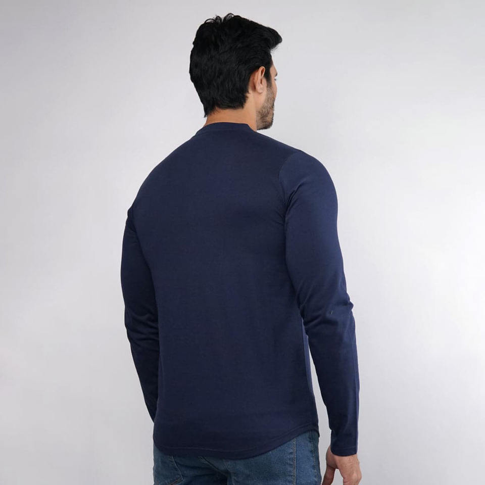 T-shirt Henley Homme Personnalisable Coupe Slim 100% Coton Impression Sérigraphique Logo au Dos Design Vierge Anti-Plis Écologique