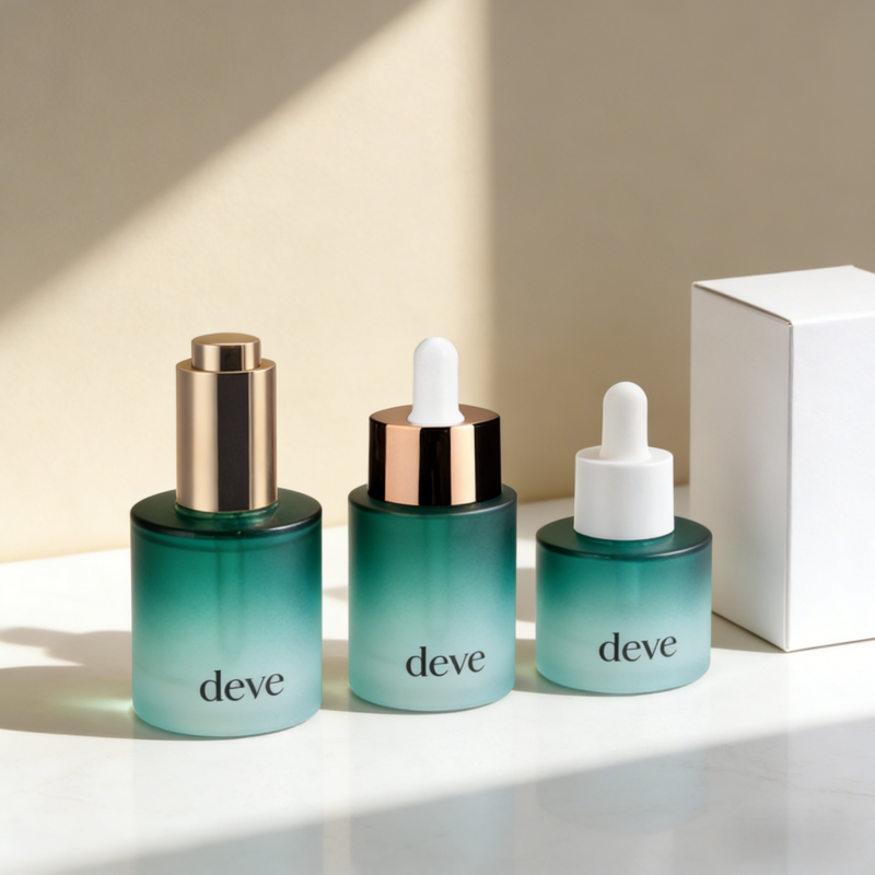 Flacon compte-gouttes personnalisable en verre blanc de 15/30/50/100 ml pour huiles essentielles et sérums de soin visage, avec bouton-poussoir pour crèmes