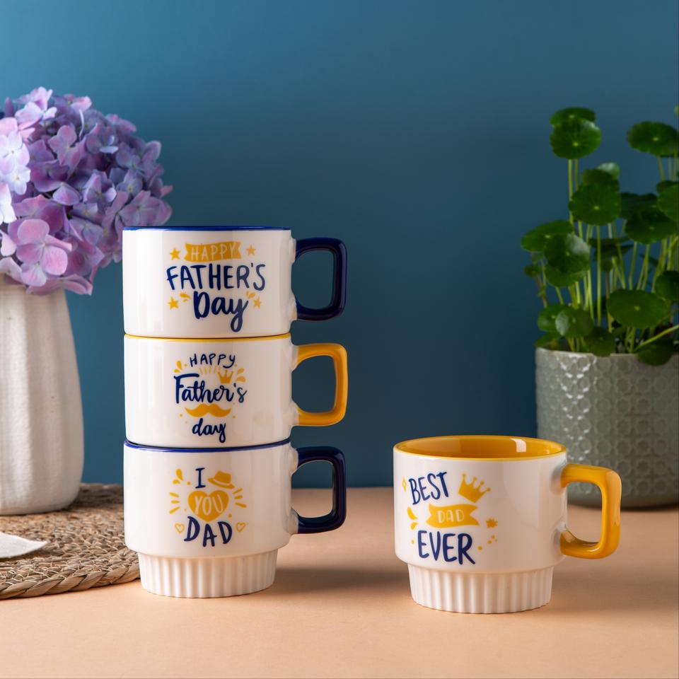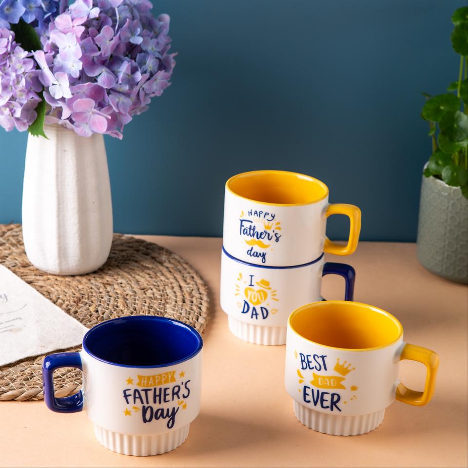 Ensemble de tasses empilables personnalisables pour la fête des pères, tasses en céramique jaunes et bleu marine, meilleurs imprimés pour papa, commande en gros, directement de l'usine