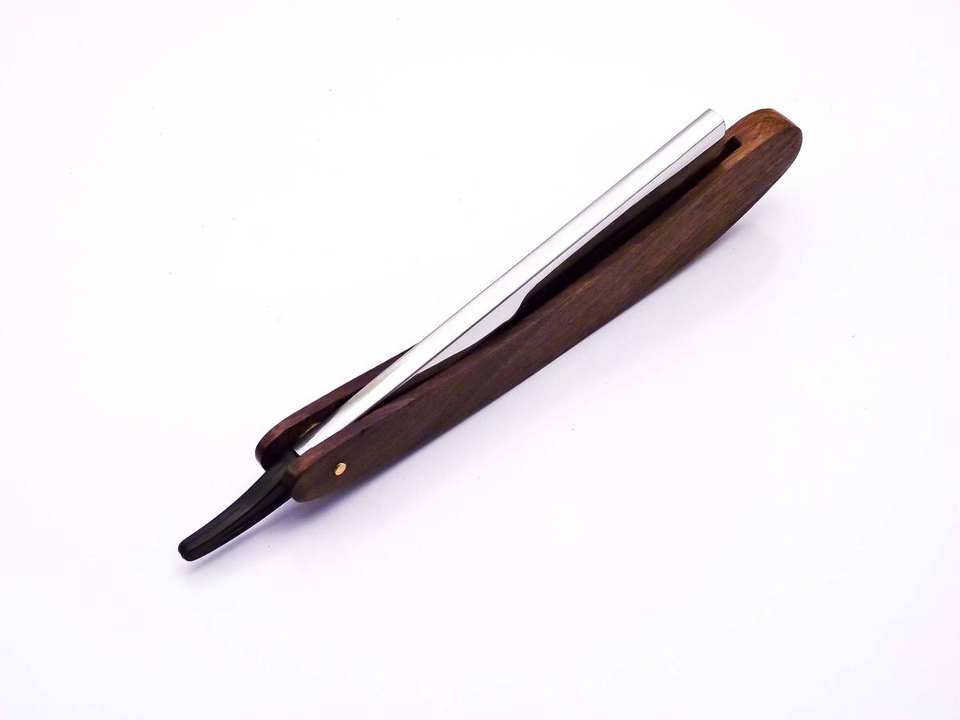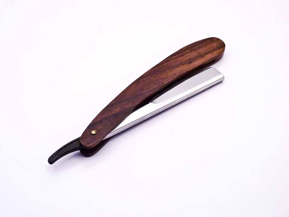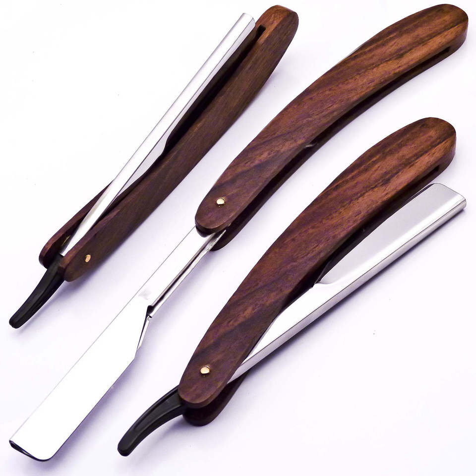 Rasoir droit à lame en acier inoxydable personnalisable, usage professionnel et personnel, avec manche en bois naturel pour les barbiers