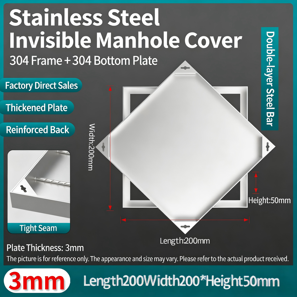 Couvercle de trappe invisible en acier inoxydable personnalisable : Cadre en acier inoxydable 304 + Plaque de base en acier inoxydable 304