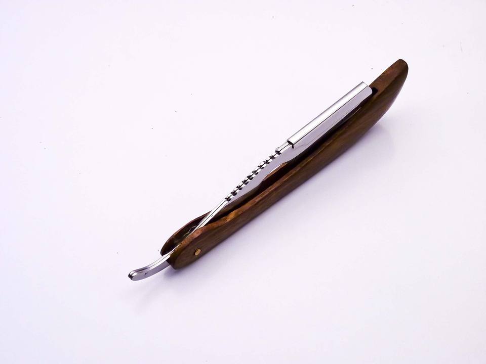 Rasoir droit personnalisable en acier inoxydable avec manche en palissandre et lame remplaçable