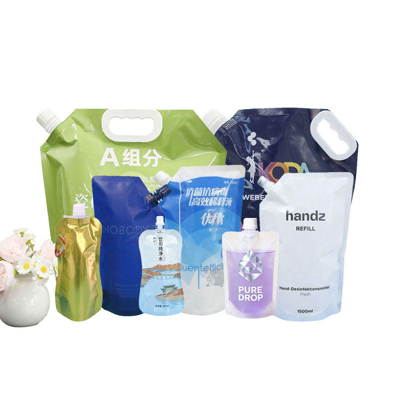 Sac de logo étanche à poignée de poche à bec debout imprimé gravure personnalisable pour emballage de liquide pour détergent boisson bière