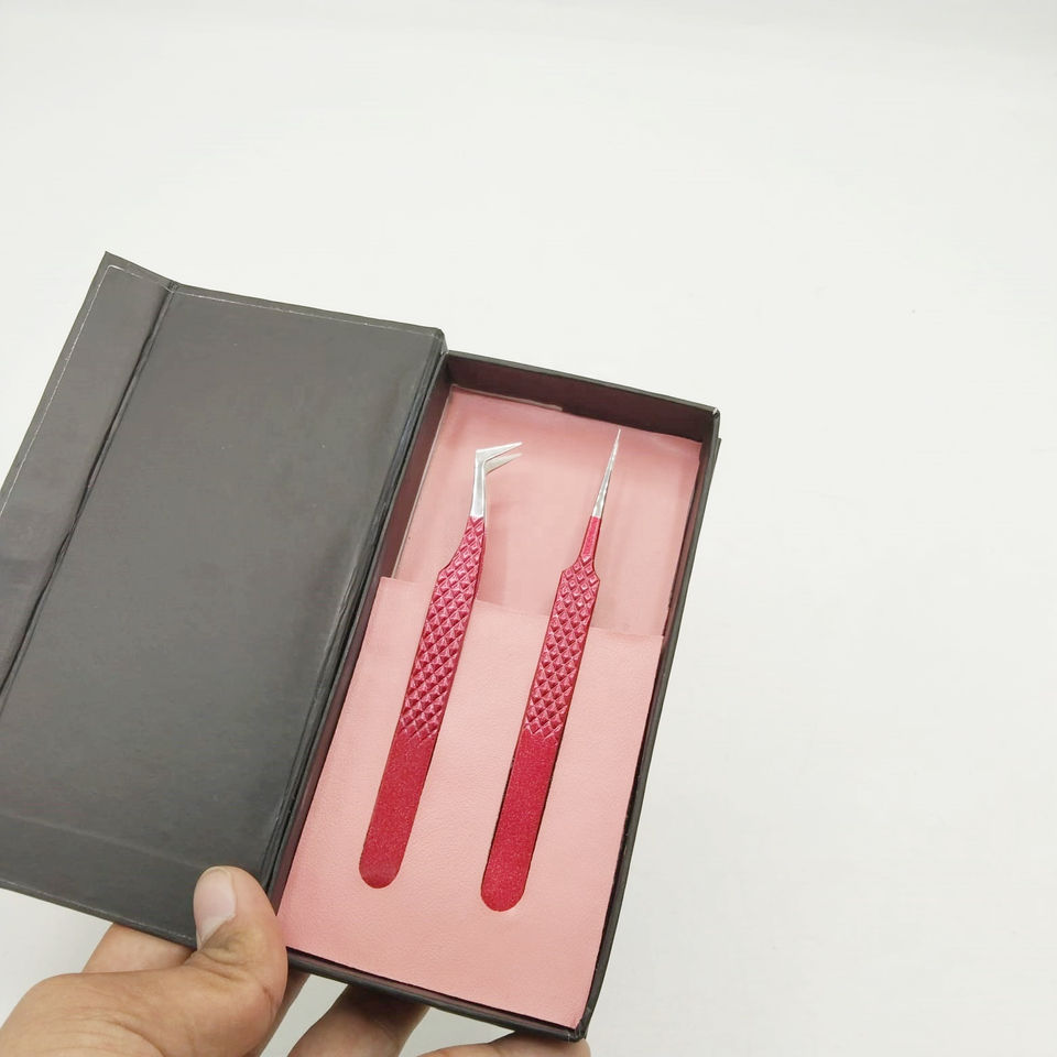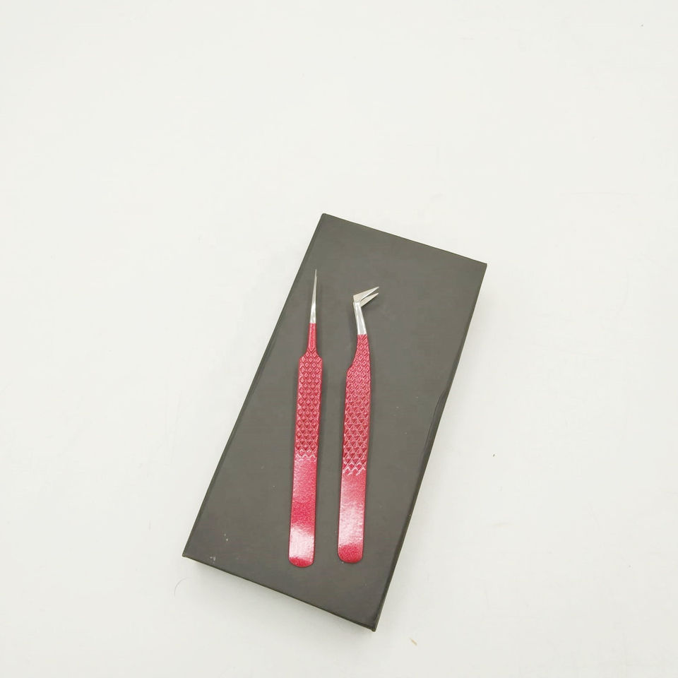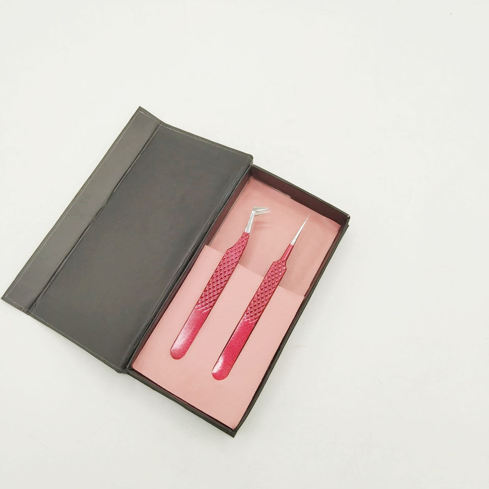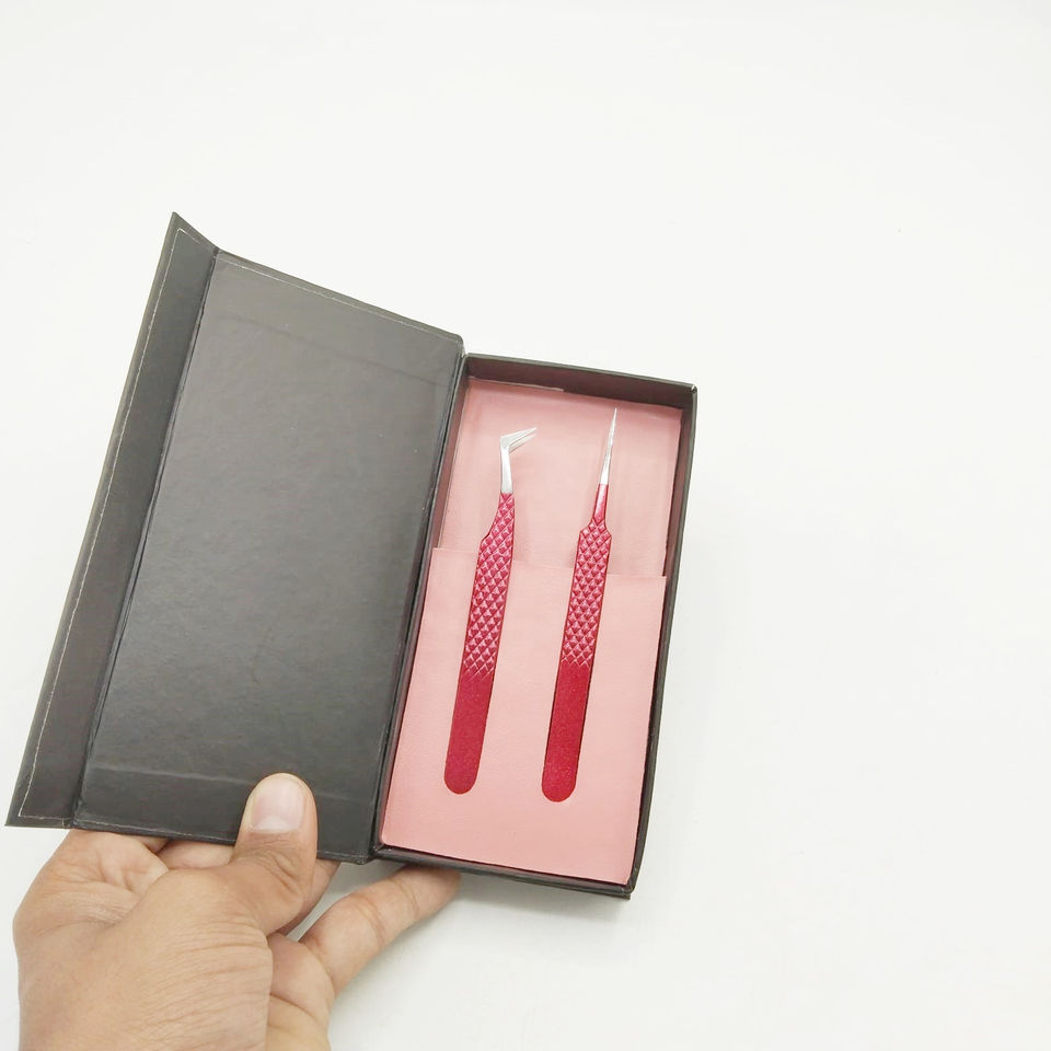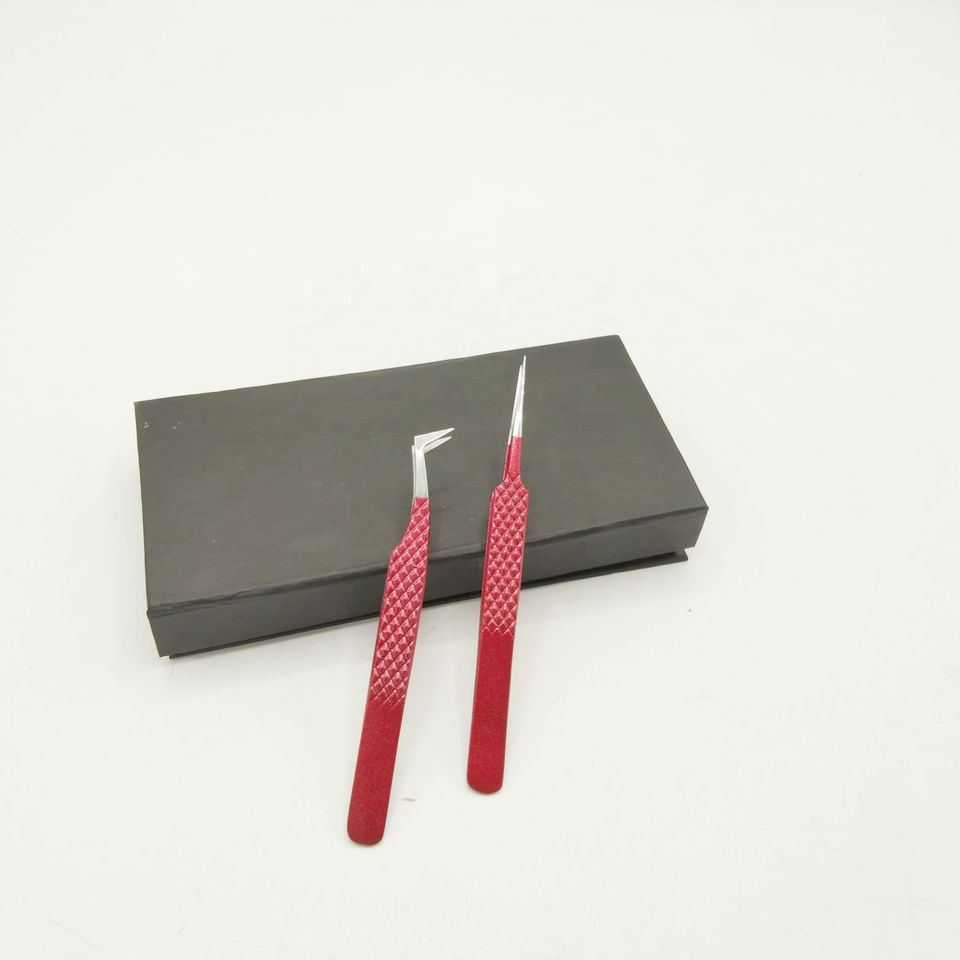 Pince à épiler de volume russe polie droite personnalisable forte adhérence revêtement en poudre rouge lisse en acier inoxydable durable
