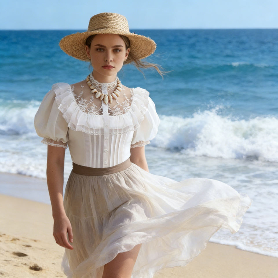 T-shirt pour femme personnalisable, style doux, élégant et féminin, col carré, manches régulières à volants, léger, avec accent en tulle
