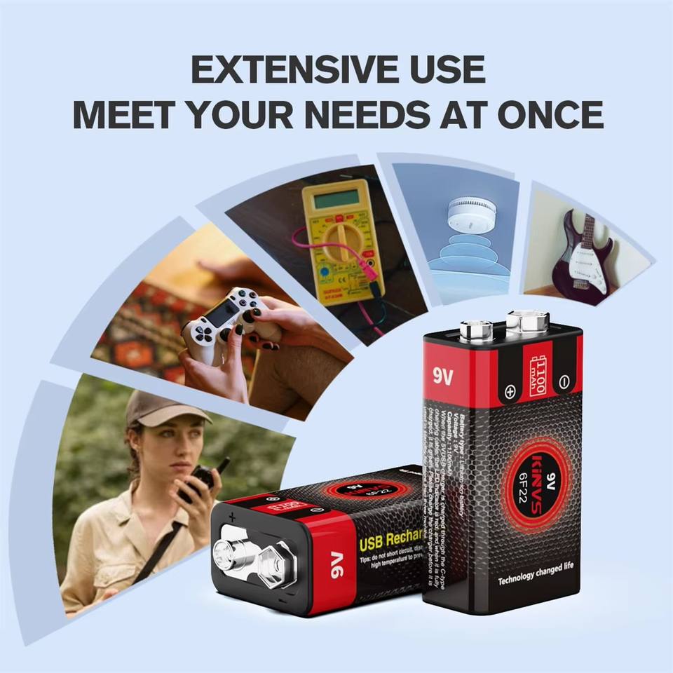 Batterie numérique au lithium-ion rechargeable 9V 1100mAh avec interface USB personnalisable, modèle KINVS 6F22 en stock