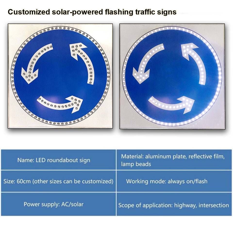 Plaque en aluminium avec impression UV personnalisable 3M EGP Film réfléchissant cercle rond-point route solaire LED clignotante panneaux de signalisation