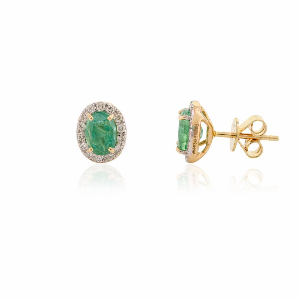 Personnalisable Unique À La Mode Dernières Émeraude Naturelle et Diamant Ovale Coupe Boucles D'oreilles À La Main 14k Or Jaune Bijoux Top Vente
