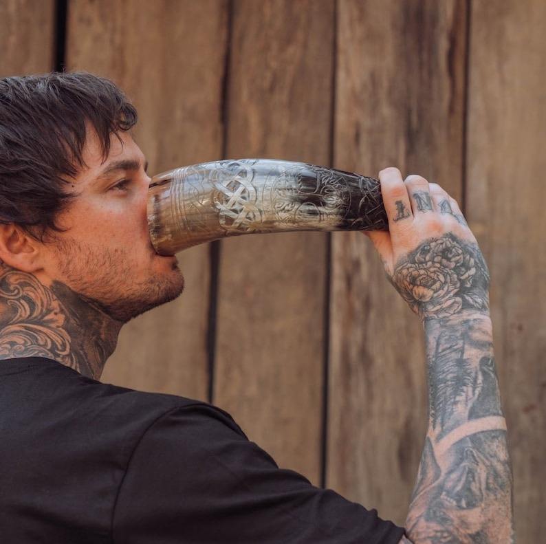 Tasse à Corne à Boire Viking Authentique Fabriquée à la Main et Écologique, Matériau Organique Personnalisable pour Cadeaux de Barware Ale Mead Unique