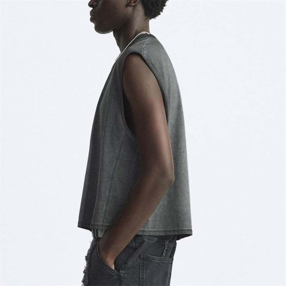 Débardeur vintage lavable à l'acide personnalisable pour hommes gilet tricoté de muscle de forme physique pour le basket-ball et le sport de hip-hop-marque personnalisée