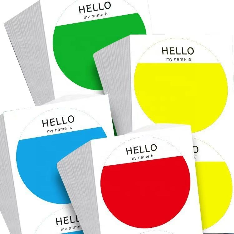 Feuille d'autocollant de nom étanche personnalisable 'Hello My Name Is' impression couleur forme personnalisée finition stratifiée pour bureau salle de classe