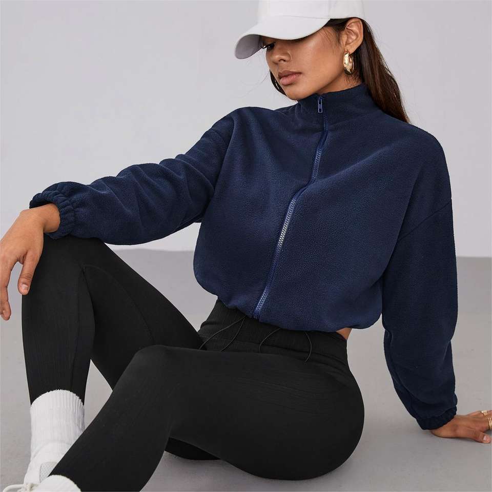 Sweat-shirt col roulé en forme de nounours court personnalisable pour femme, veste molletonnée épaisse et chaude à fermeture éclair, ample, en tissu tissé
