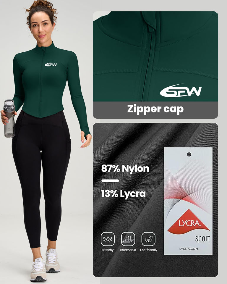 Veste de sport personnalisable pour femme à manches longues, séchage rapide, avec fermeture éclair, imprimée, ajustée, pour la course, le yoga et le fitness