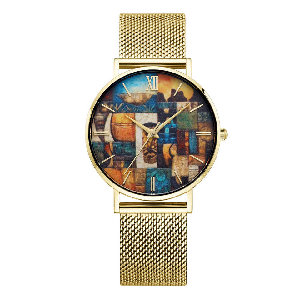 Montre en quartz dorée pour femme personnalisable avec mouvement japonais, design unique, boîtier en acier inoxydable et cadran en verre, fabriquée en Chine