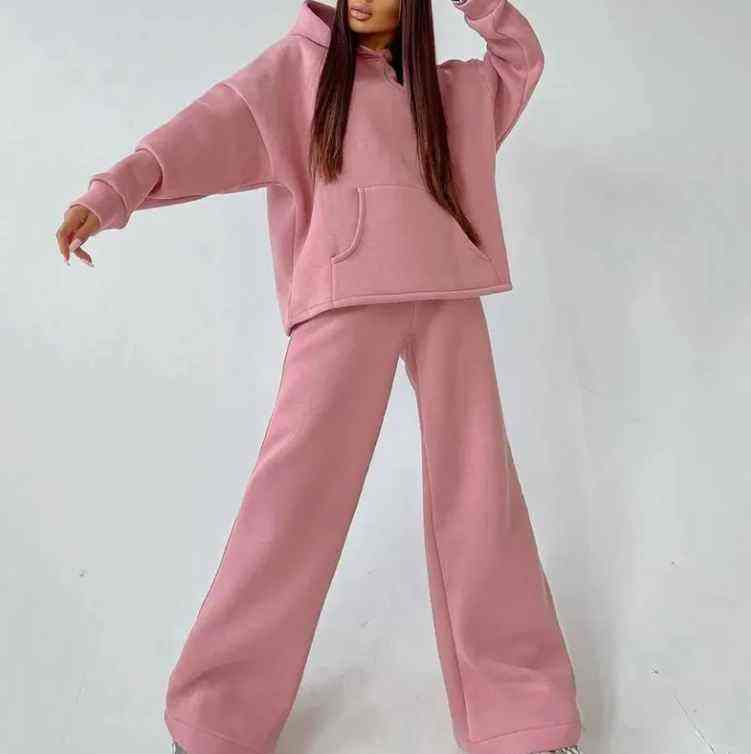 Customizable Women's Heavy Weight Casual Wear Tracksuit Pullover Oversized Polyester/Cotton Solid Colour Stringless Above Knee