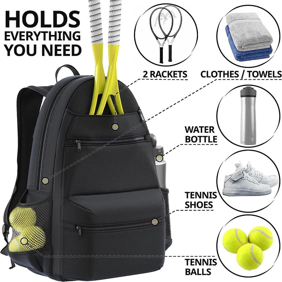 Sac à dos de tennis personnalisable pour femmes avec espace pour raquettes et chaussures Polyester Pickleball Squash Sacs de tennis pour hommes et femmes