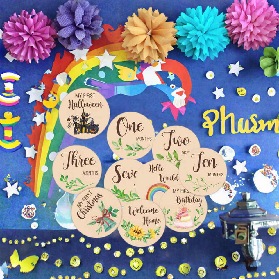 Personnalisable en bois bébé mensuel jalon carte calendrier fête Animal Photo Prop bébé mois souvenir, signe de naissance en bois