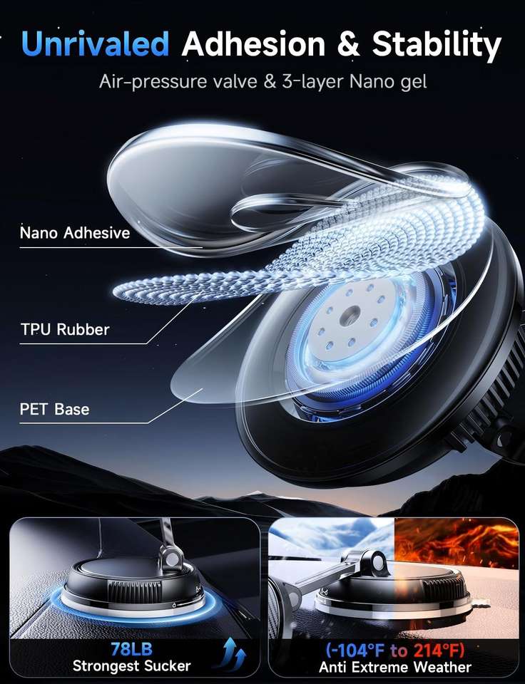 Personnalisable pour voiture : Chargeur sans fil 15W | 360 ° Rotation | Aimant 2400gf testé aux températures extrêmes 12H | Assurance d'approvisionnement à long terme