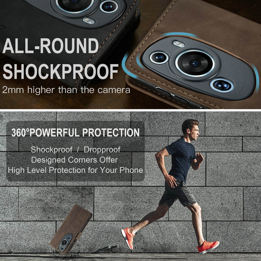 Personnalisable pour CaseMe pour Huawei P60 Art P50 P40 P30 P20 Pro Crazy Horse Portefeuille en cuir lisse Flip Cover Sac pour téléphone portable