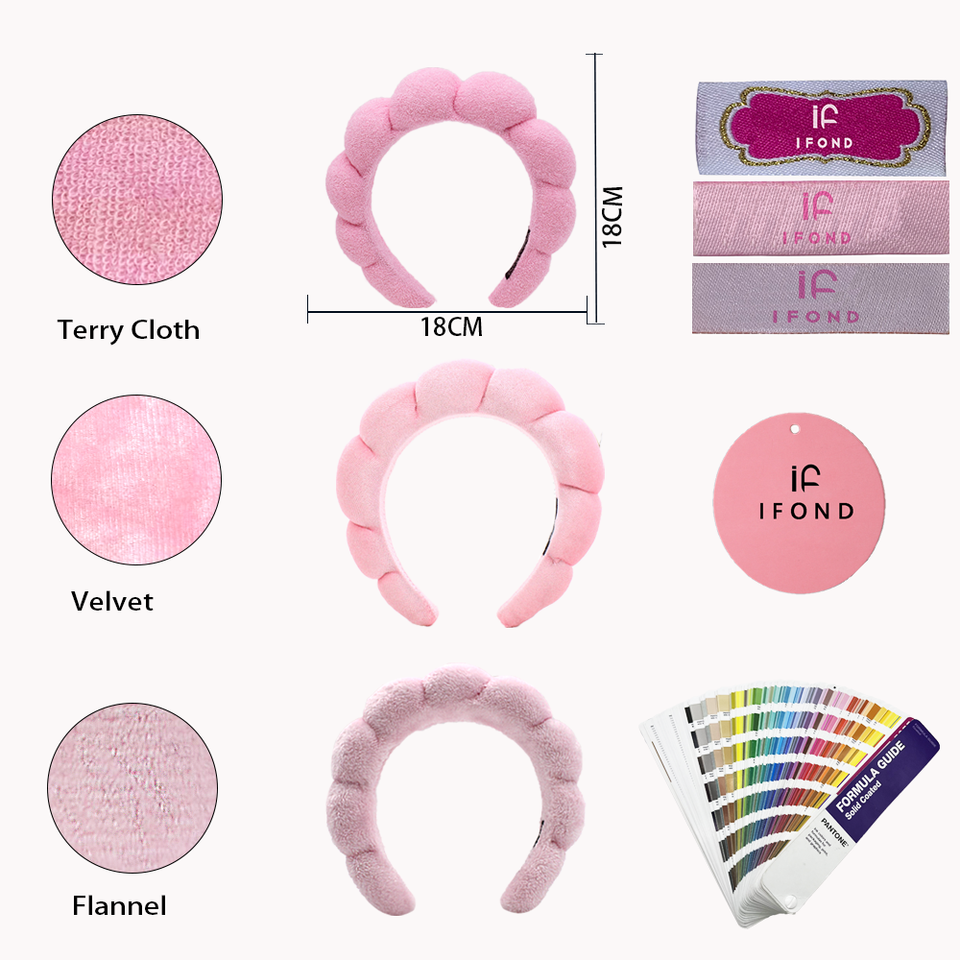 Bandeau de SPA Rose Tendance en Velours Doux et Éponge, avec Logo Personnalisable, pour Femmes, Idéal pour le Maquillage et le Lavage du Visage