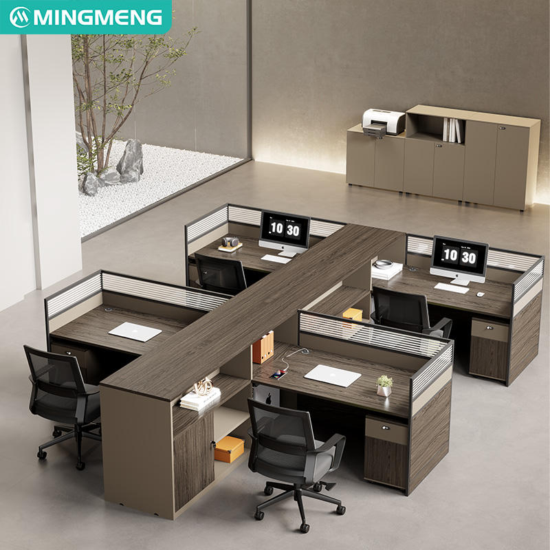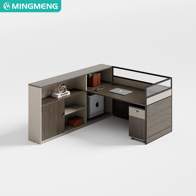 Bureau de travail personnalisable au style moderne, élégant et minimaliste, avec cloison et armoire de rangement, bureau informatique.